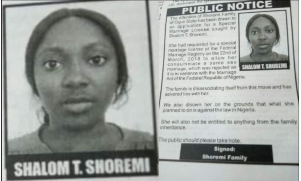 Nigerian family disown their lesbian daughter in national newspaper A post shared by DATSWASUP (@datswasup) on May 25, 2018 at 11:32am PDT